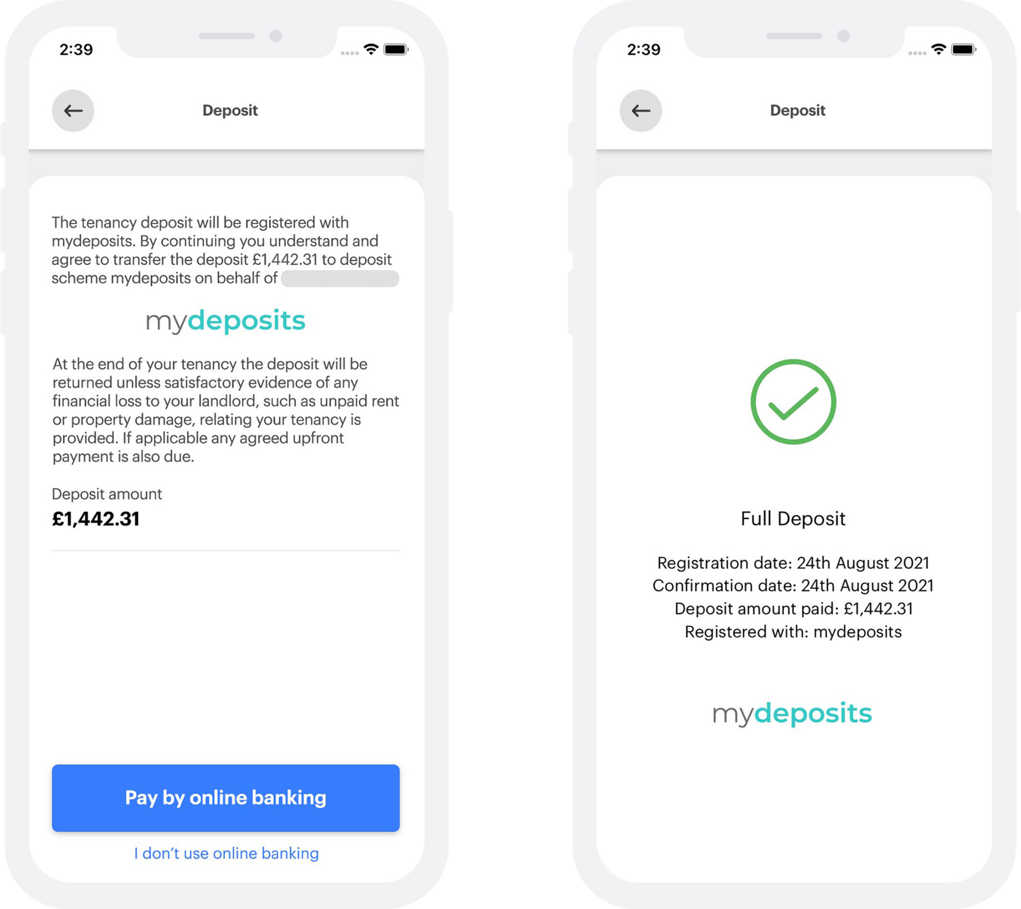 In integrating with both mydeposits and TDS, and applying added payments technology, the registration and confirmation of payment of deposit is enabled in real-time.